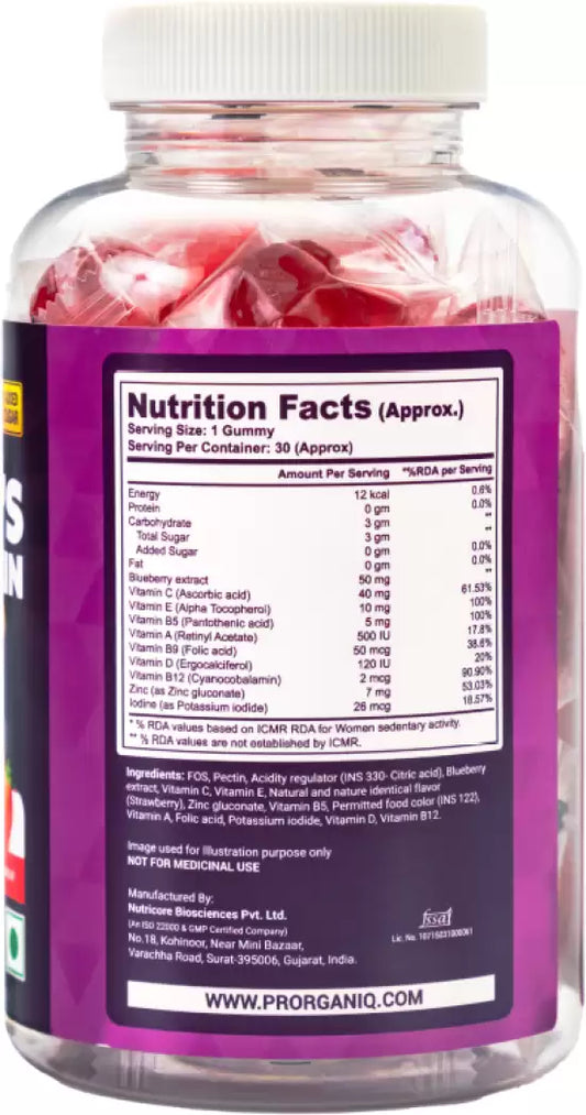 Sold out Best SellerProrganiq Women's Multivitamin Gummies with Blueberry Extract (30 No)